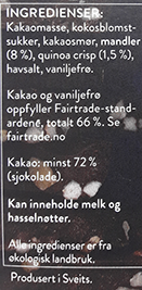72% Sjokolade 80g Økologisk Berit Nordstrand