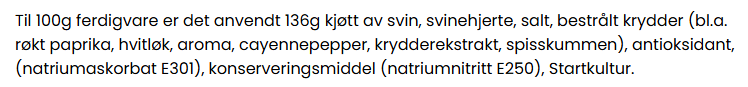 NÆRINGSINNHOLD