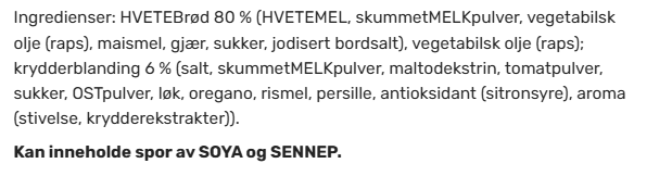 NÆRINGSINNHOLD