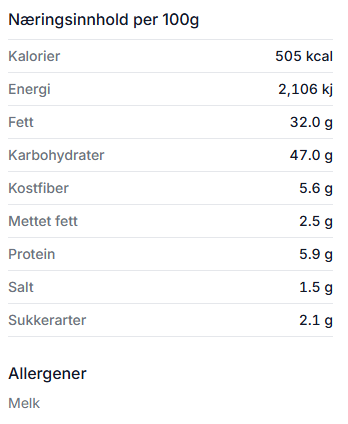 NÆRINGSINNHOLD