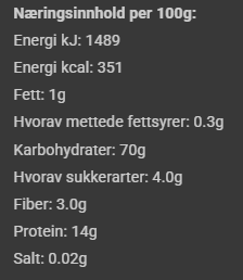 NÆRINGSINNHOLD