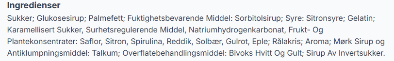 NÆRINGSINNHOLD
