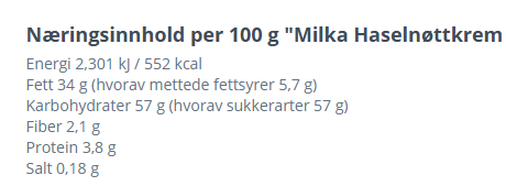 NÆRINGSINNHOLD