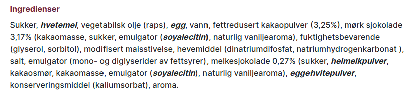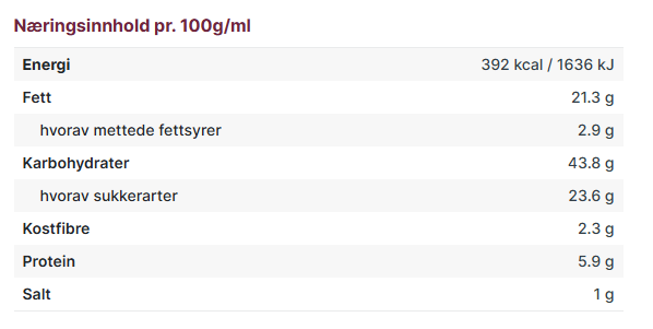 NÆRINGSINNHOLD
