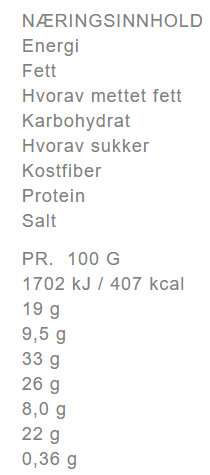 NÆRINGSINNHOLD