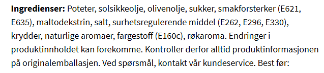 NÆRINGSINNHOLD