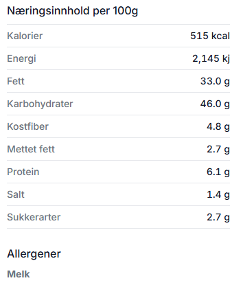 NÆRINGSINNHOLD