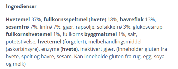NÆRINGSINNHOLD