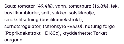 NÆRINGSINNHOLD