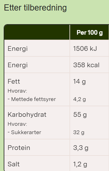 NÆRINGSINNHOLD